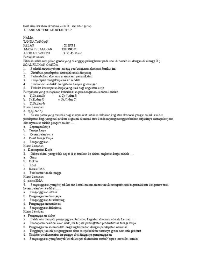 Soal Dan Jawaban Ekonomi Kelas Xi Semester Genap Tahun 2017