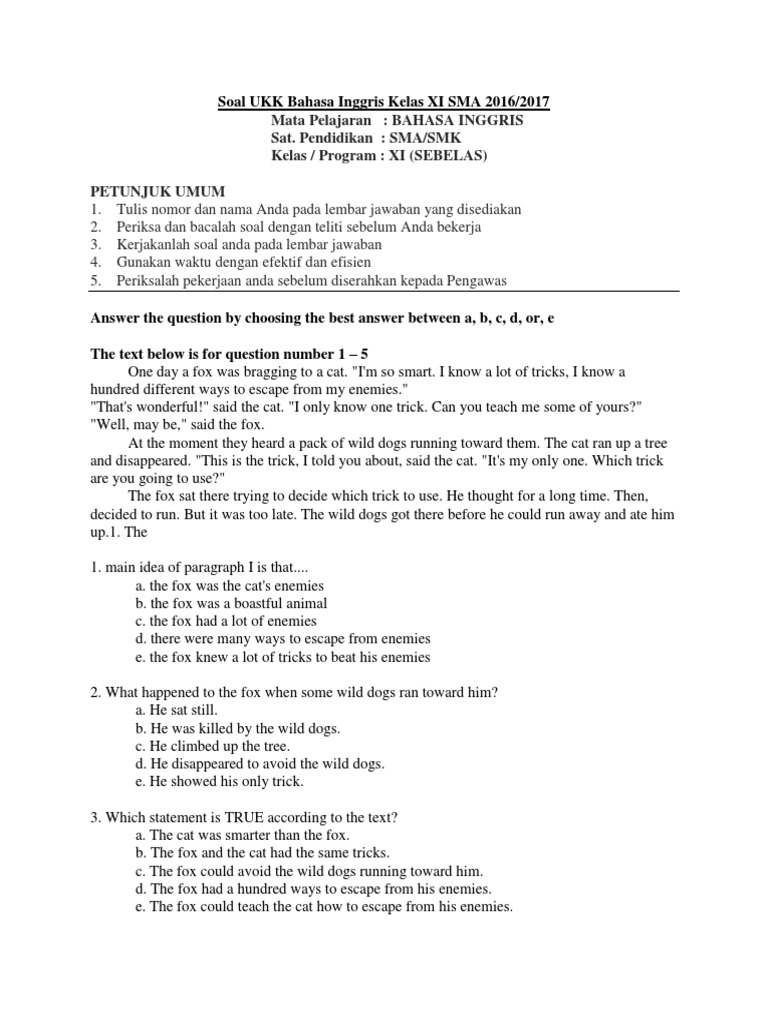 Bank soal bahasa inggris smk kelas xi. Soal dan Kunci Jawaban IPA KSN-K SD 2020 PDF Tingkat KabupatenKota. 9 Responses to kumpulan soal bahasa inggris sma kelas 11 Bahasa Inggris kelas XI.