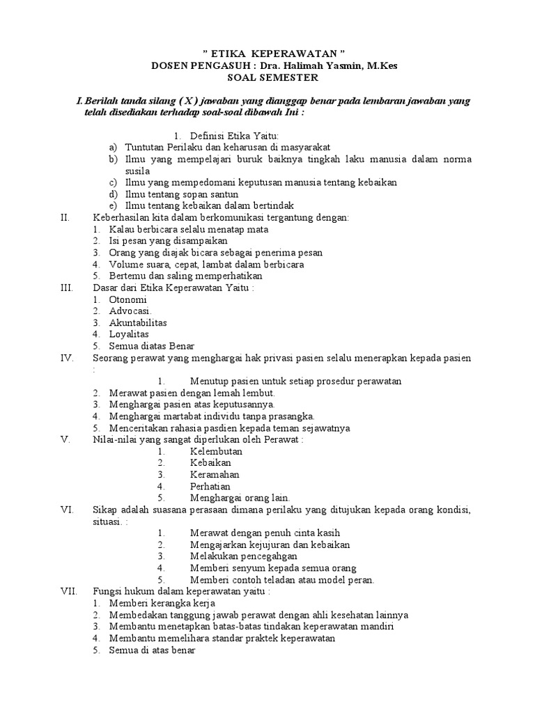 Contoh soal pilihan ganda tentang kasus etika keperawatan. Kali ini kita akan membahas soal lagi jika kalian bertanya kenapa kok banyak soal. Kelas 10 kelas 11 kelas 12.