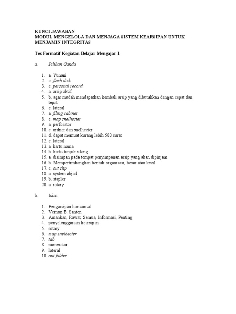 Kunci Jawaban Mengelola Sistem Kearsipan