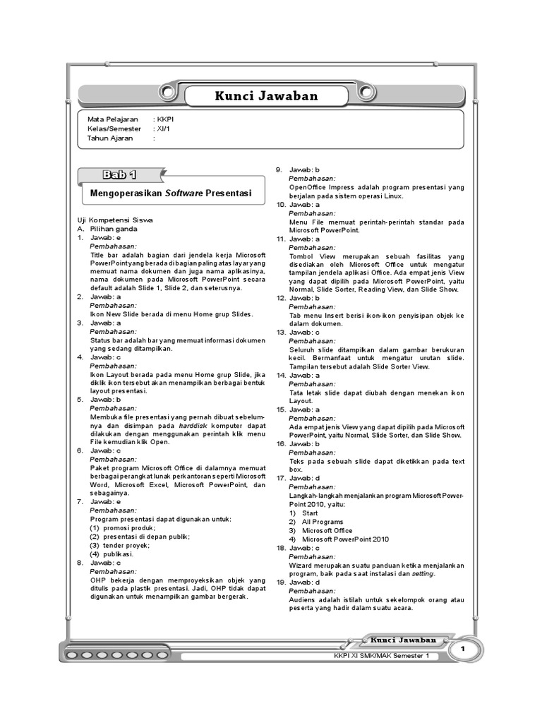 Kunci Jawaban Kunci Jawaban Mengoperasikan Software Presentasi