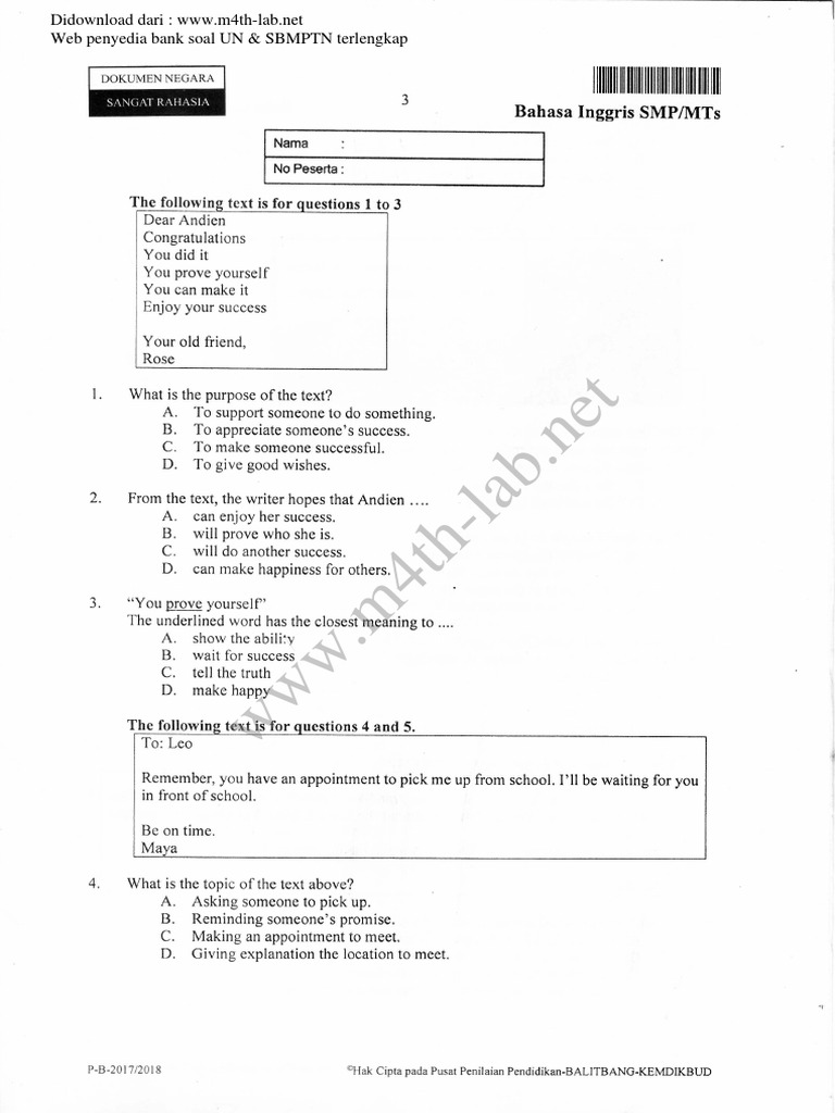 Un 2018 Smp B Ing P1 Www M4th Lab Net Pdf Didownload Dari Www M4th Lab Net Web Penyedia Bank Soal Un Sbmptn Terlengkap 111111111 1111111111111111 Course Hero