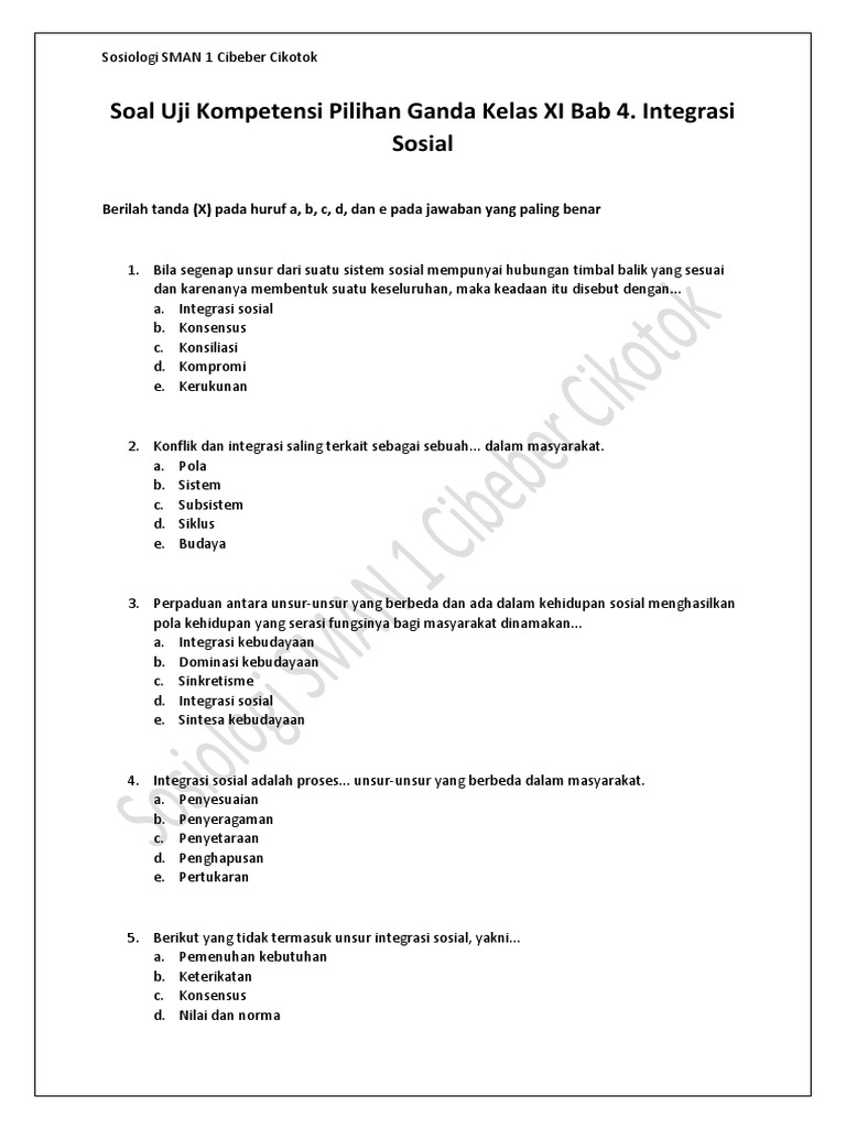 Soal Pas Sosiologi Kelas 10 Peminatan Kunci Jawaban K 13 2016. Integrasi Sosial Soal UKK Sosiologi Kelas 11 Kunci Jawaban K-13 2015 Contoh Soal Dan Jawaban Integrasi Sosial Ppkn - Guru Ilmu Sosial Soal Dan Jawaban Konflik Sosial - Guru Ilmu Sosial soal pilihan ganda tentang integrasi dan reintegrasi sosial sebagai upaya pemecahan masalah konflik - Brainly. SMAN 1 CIBEBER SMA Negeri 1 Cibeber didirikan pada tahun 2000 yang mulanya merupakan sekolah Vilial SMAN 1 Bayah dengan Kepala Sekolah PLH Drs.