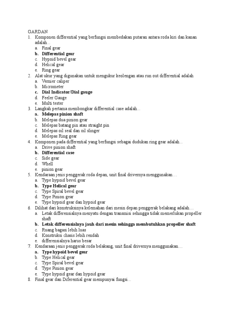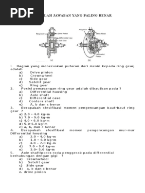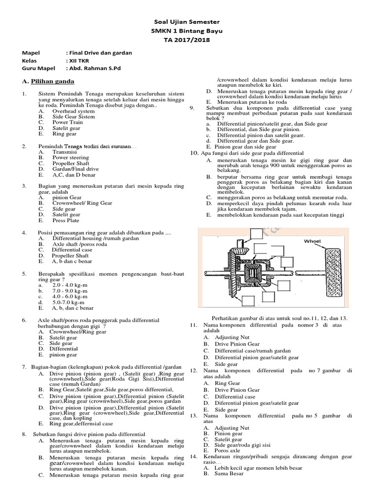 Kelas Xii Tkr Soal Sistem Differential Gardan