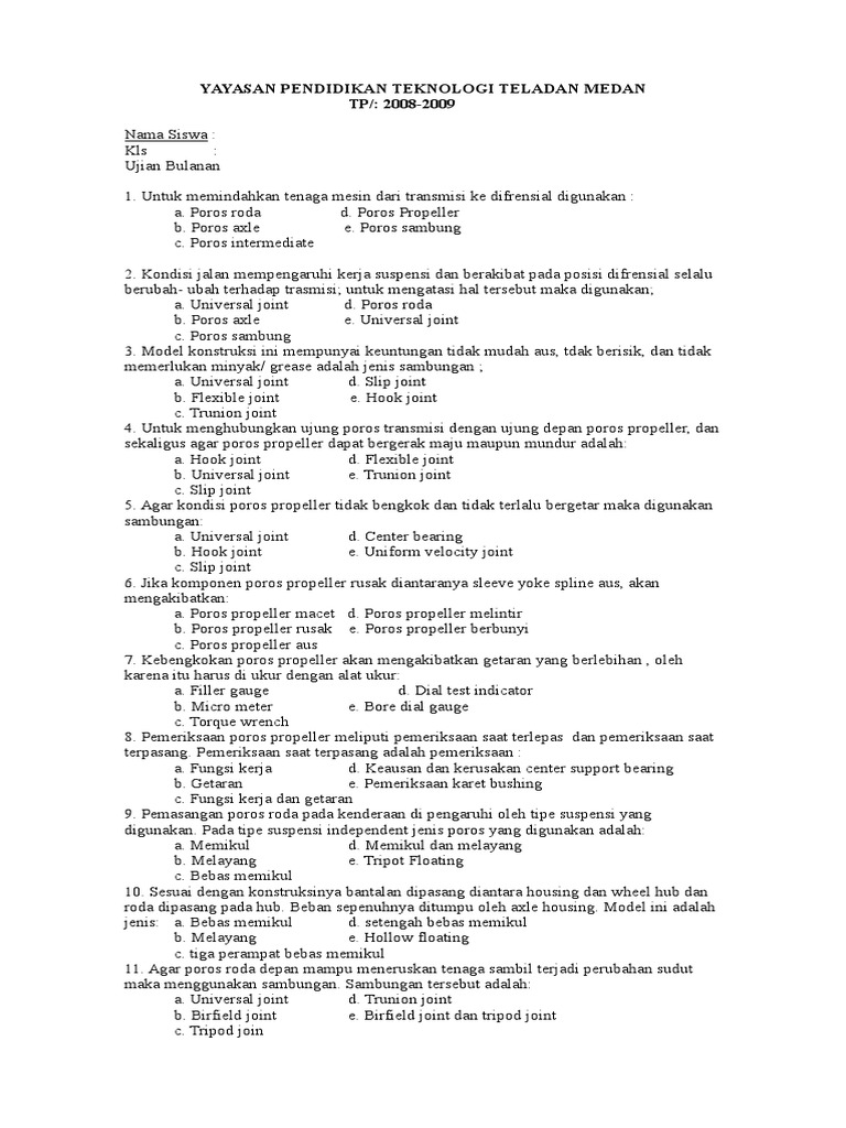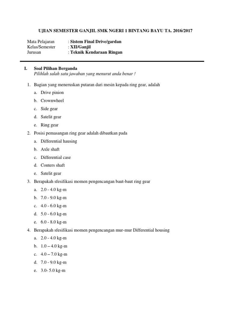Otomotif Smk Contoh Soal Evaluasi Belajar Akhir Semester 1 Pemeliharaan Sasis Dan Pemindah Tenaga Teknik Kendaraan Ringan Otomotif Tkr