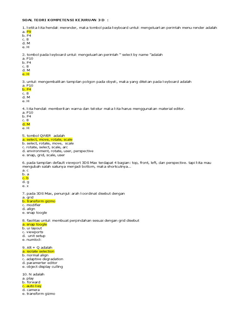Soal 3d N Kunci. Animasi 3 D Uts Genap. Sahabat pembaca yang baik hati dan semoga dalam keadaan sehat kali ini penulis ingin sharing tulisan yang berjudul kumpulan contoh soal multimedia jawaban untuk lebih.