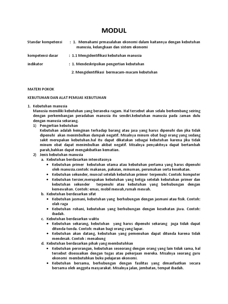 Modul Ekonomi Sma Kelas X Semester 1