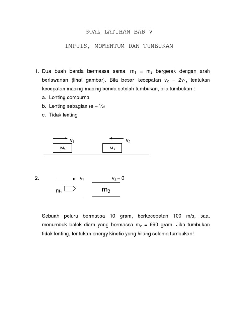 Impuls Momentum dan Tumbukan. Berikut ini beberapa contoh soal mengenai impuls momentum dan tumbukan beserta pembahasannya. Dec 08 2018 Itulah artikel tentang contoh soal impuls dan momentum lengkap dengan pembahasannya.
