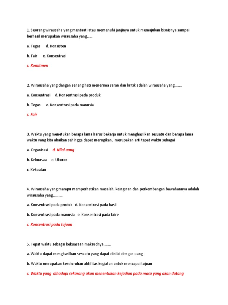 Kumpulan Soal Kewirausahaan Kelas X Dan Kunci Jawabannya Ilmusosial Id