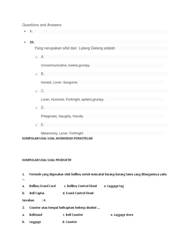 Contoh Soal Front Office Pilihan Ganda Beserta Jawabannya Da Type.