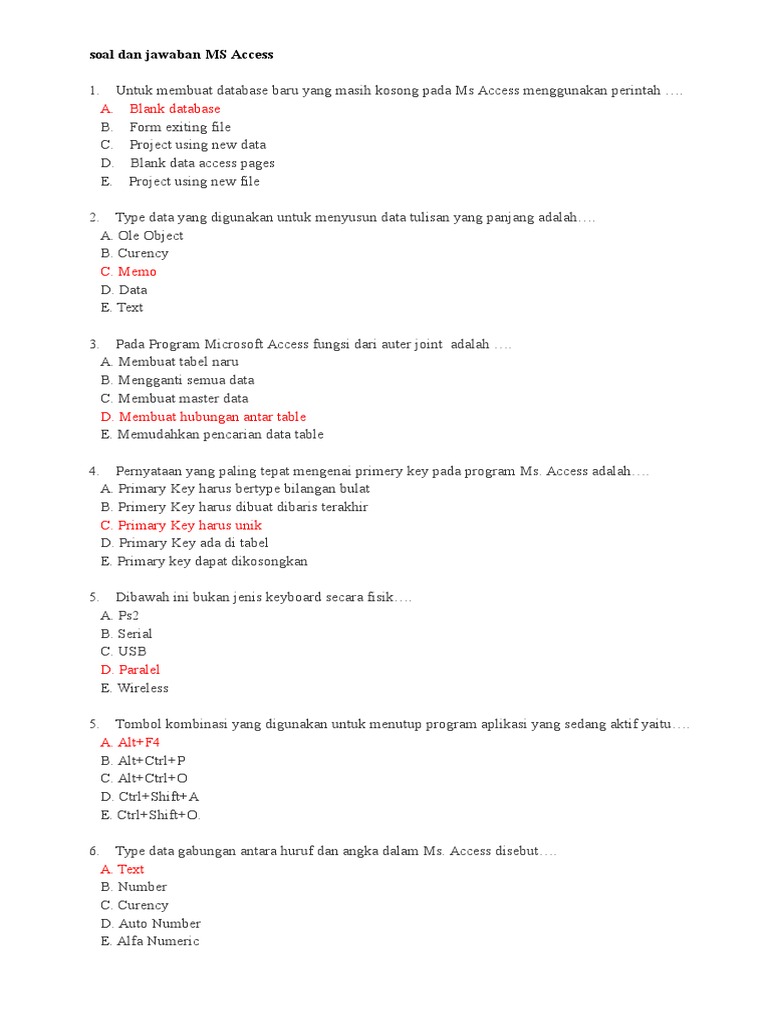 Bank Soal Dan Jawaban Pilihan Ganda Ms Acces2007