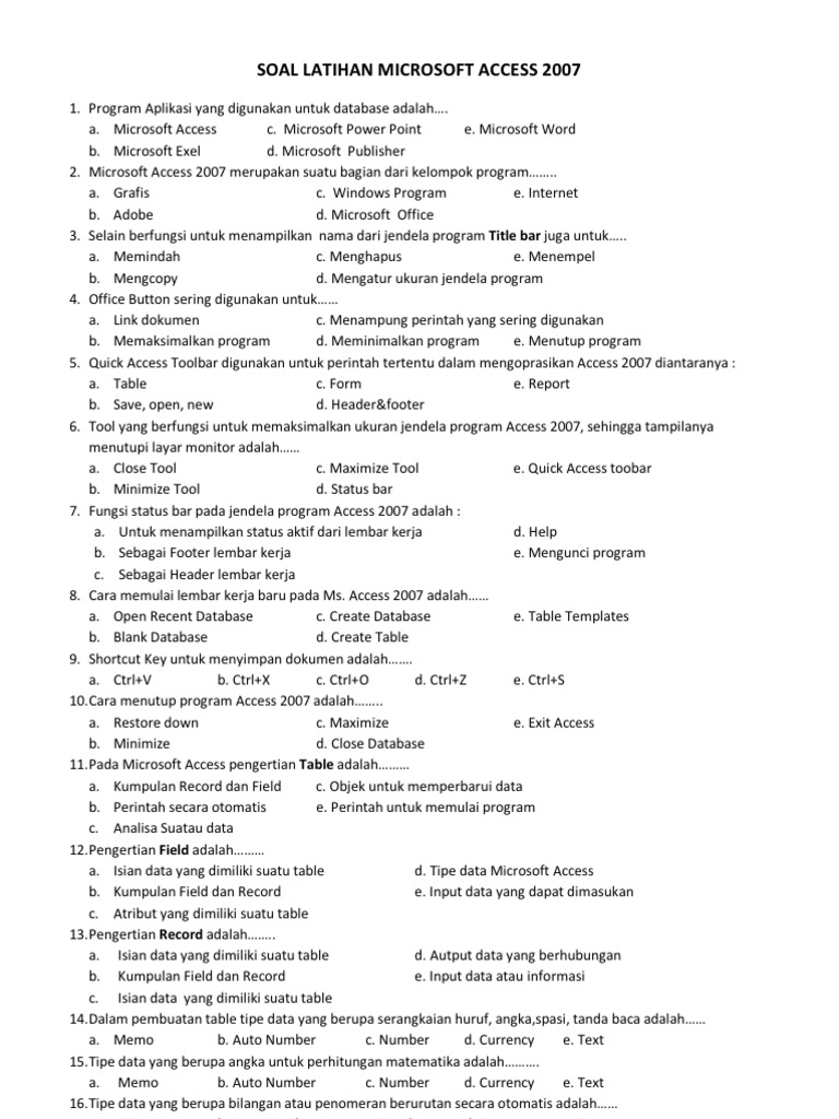 Berikut ini adalah kumpulan dari berbagi sumber tentang contoh soal pilihan ganda microsoft access 2007 yang bisa gunakan untuk file revisi dan diunduh secara gratis dengan menekan tombol download biru dibawah ini. Guru sd smp sma contoh soal microsoft excel beserta jawabannya. 20190713 Itulah yang dapat kami bagikan terkait contoh soal praktek microsoft access dan jawabannya.
