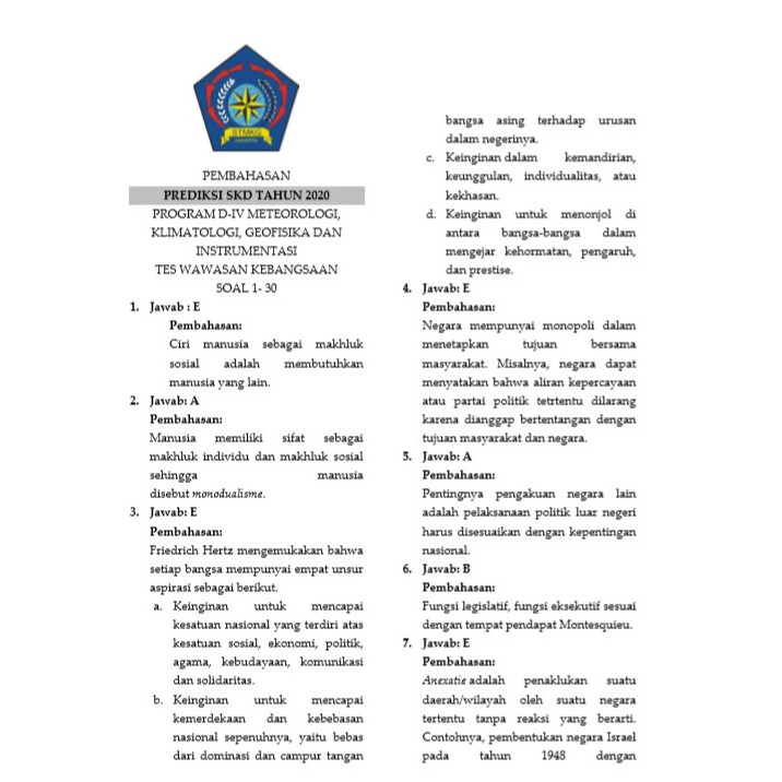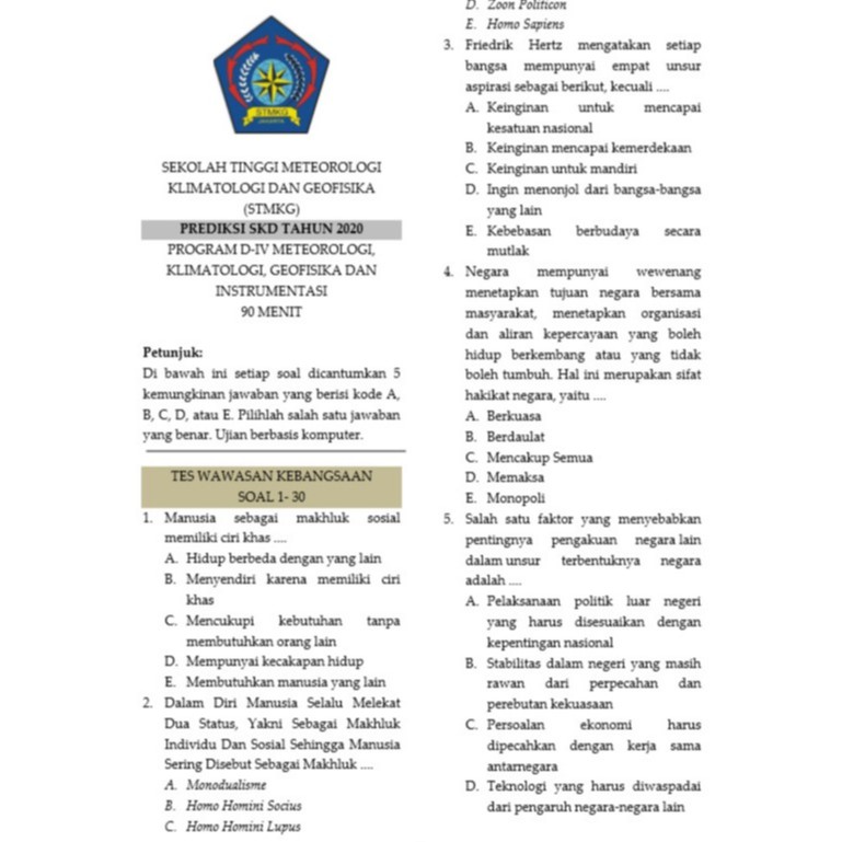 Contoh Soal Cat Untuk Ujian Tes Skd Kedinasan Stan Ipdn Sttd Poltekip Dan Poltekim Stin Stis Stmkg Stsn