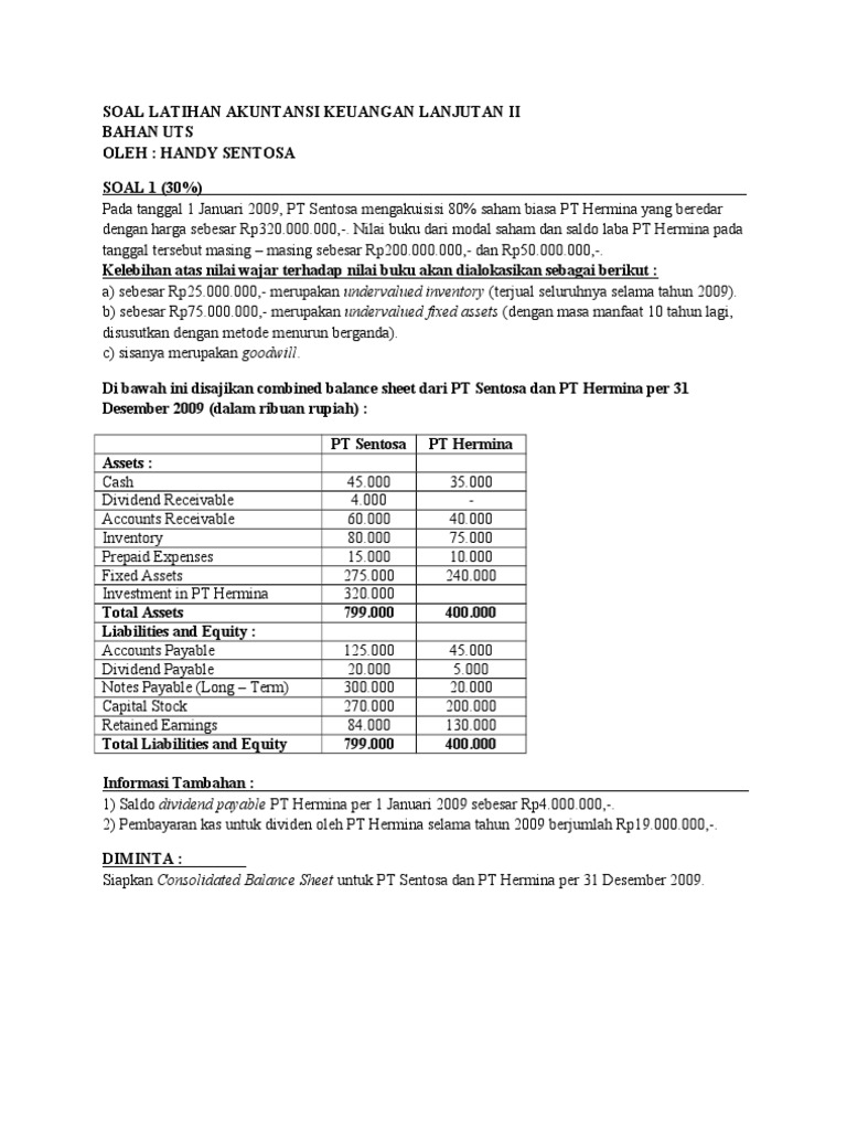 Soal Latihan Akuntansi Keuangan Lanjutan Ii Bahan Uts