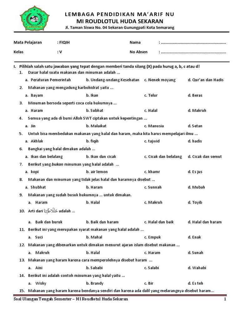 Soal Fiqih Kelas 1 Semester 2 Dan Kunci Jawaban Guru Galeri