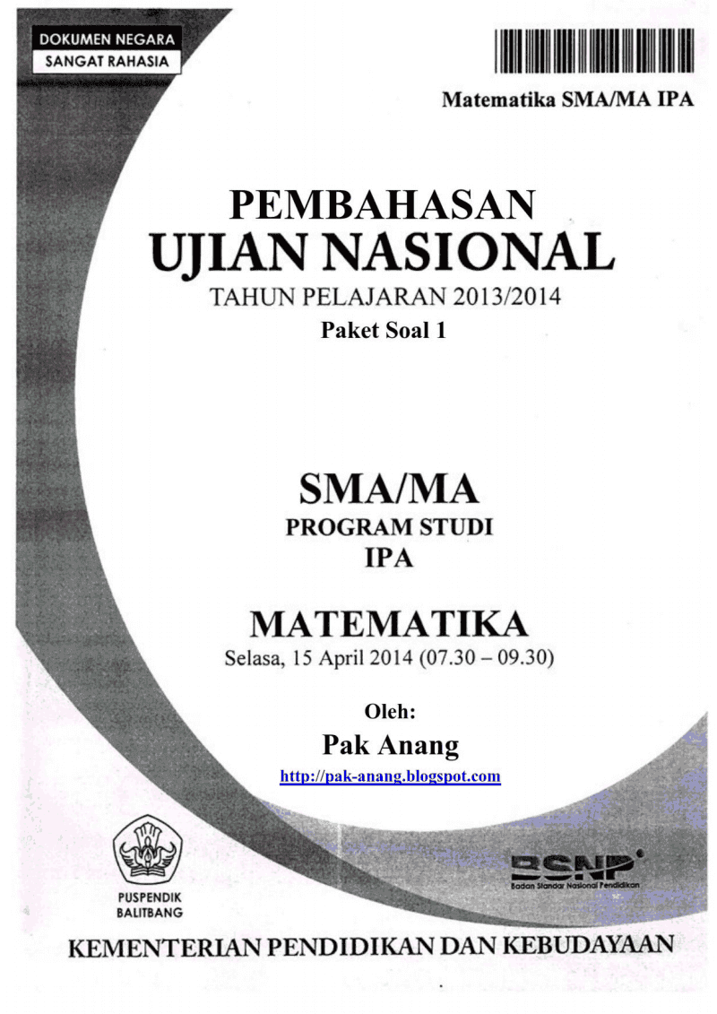 20210327 Naskah Soal dan Kunci Jawaban TO UN DKI 2015 by pak anang blogspot com. Kali ini kami akan membagikan sebuah artikel yang kami harap bisa menjadi bermanfaat bagi para pelajar khususnya bagi adek-adek kelas 12 yang akan menempuh UNBK dalam waktu dekat ini. Secara umum soal yang diujikan antara UNBK dan UNKP tidak ada perbedaan signifikan meskipun ada beberpa soal yang muncul pada UNBK namun belum saya temukan pada UNKP untuk sementara saya menyimpulkan soal UNBK lebih variatif dibanding soal.