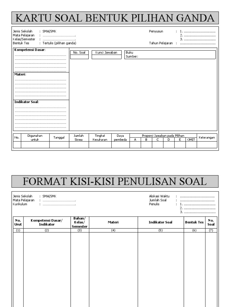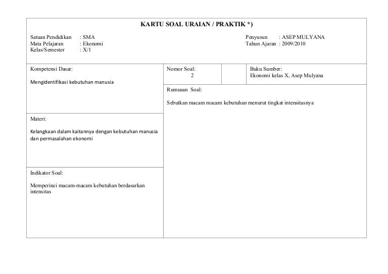 Format Kartu Soal K13 Smk Ilmusosial Id