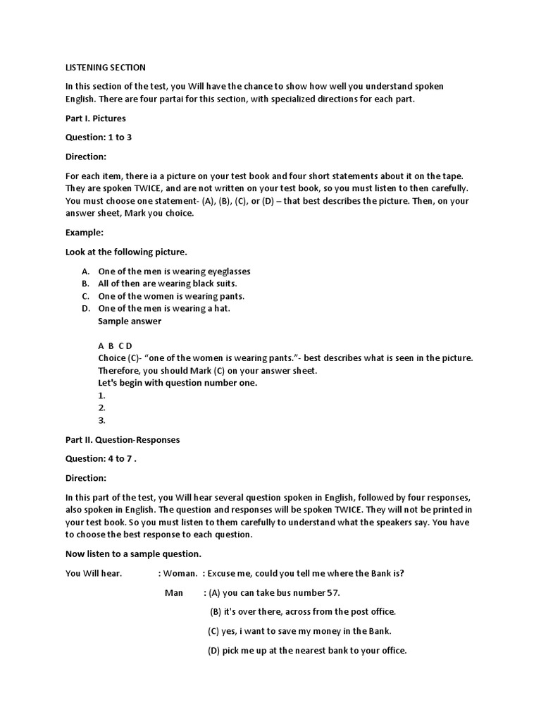Dec 31 2017 Seperti yang sudah dijelaskan di atas d alam beberapa tahun terakhir dan yang akan datang UN Bahasa Inggris SMA termasuk UN 2017 yang lalu secara garis besar terdiri atas 2 bentuk soal utama yakni listening kemampuan mendengar dan reading kemampuan memahami teks dengan rincian sebagai berikut. Apr 05 2016 Soal Listening Section Mp3 Bahasa Inggris dan Teksnya By Om Min Posted on April 5 2016 Hai semuanya berbicara mengenai listening mungkin sebagian orang sudah tidak asing lagi bahkan ada yang memiliki kegemaran dalam hal ini contohnya listening the radio listening the music and soon. Pictures gambar part II.