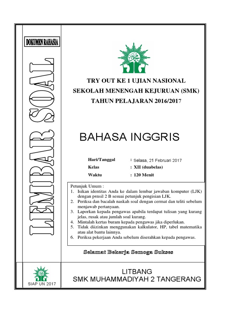 Soal try out un bahasa inggris sma 2017. Inilah soal dan audio asli listening bahasa Inggris Ujian Nasional SMA dan MA 2017 lengkap dengan jawabannya.
