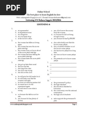 20190711 NO TAHUN SOAL PDF SOAL LISTENING NO 1 SD 15 TAPE SCRIPT. Ini merupakan lanjutan dari postingan sebelumnya tentang Latihan Soal Listening UN SMA 2014 yang terdiri dari 15 soal. 1 日前 Soal latihan listening beserta kunci jawaban part 1 apakah anda termasuk orang yang tidak menyukai materi listening bahasa inggris.