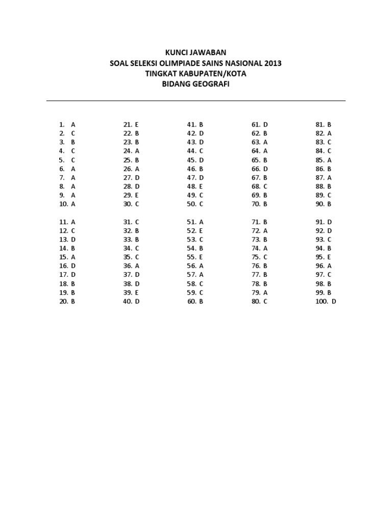 Doc Kunci Jawaban Soal Olimpiade Geografi Tahun 2016 Dewi Triningsih Academia Edu