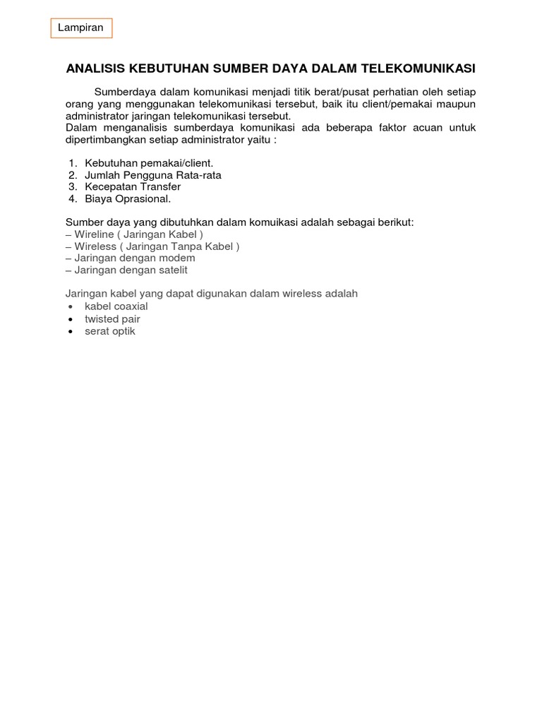 Analisis Kebutuhan Sumber Daya Dalam Telekomunikasi