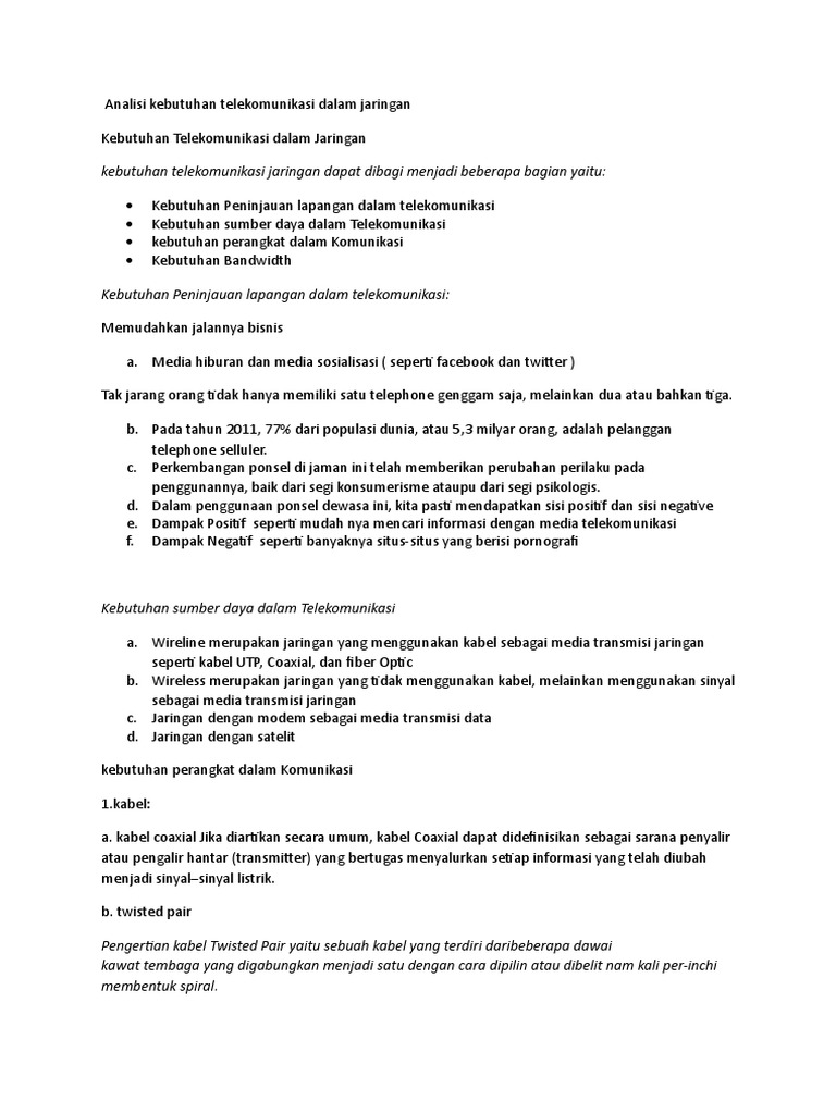 Bab5 Menyajikan Hasil Analisis Kebutuhan Telekomunikasi Dalam Jaringan Docx