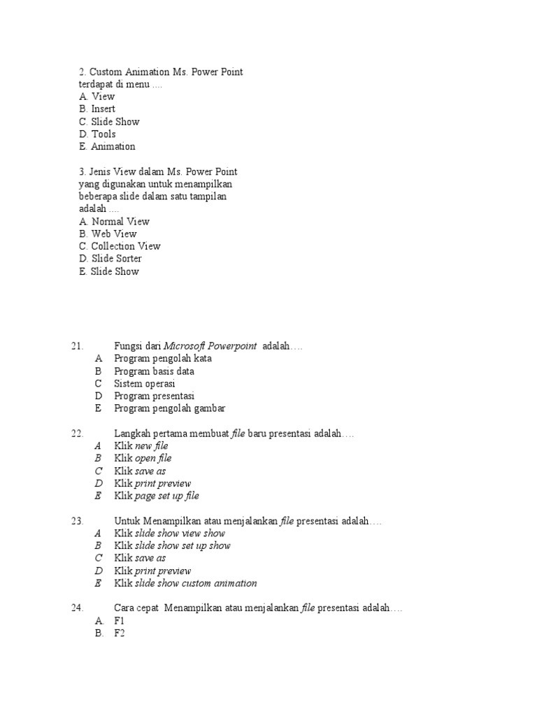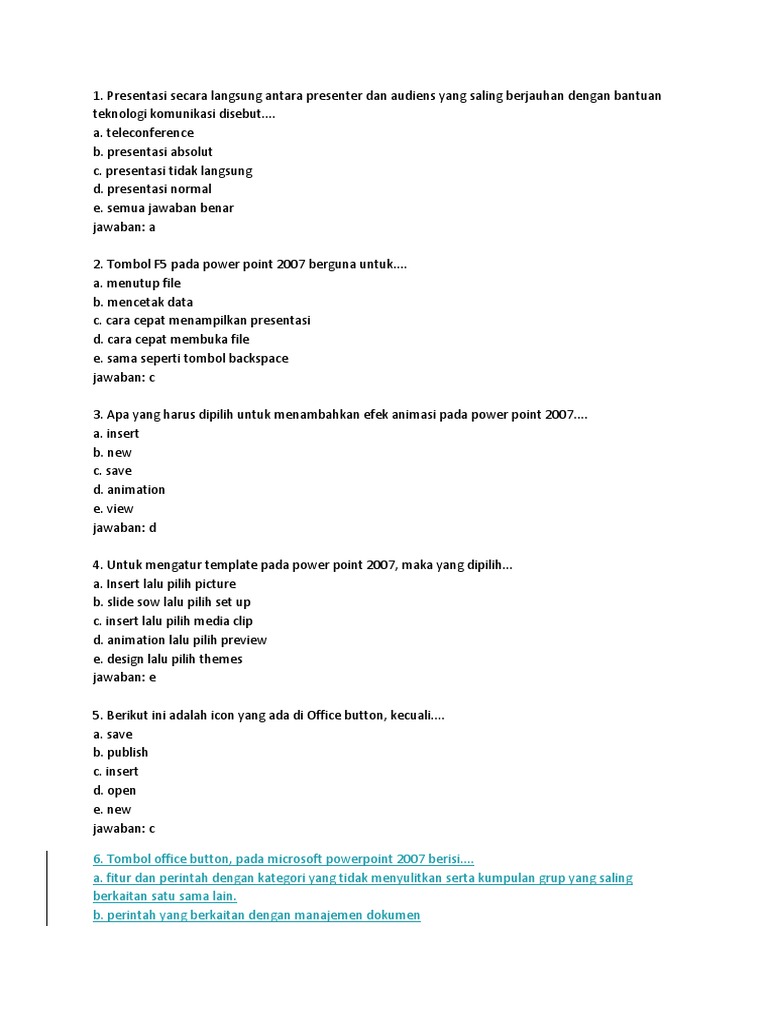 Soal Powerpoint Pilihan Ganda Dan Jawabannya Part2 Terbaru