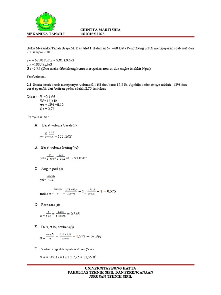 Homepage Belajar Kunci Jawaban Braja M Das. Itulah yang dapat kami bagikan terkait contoh soal dan jawaban mekanika tanah 1. A short summary of this paper.