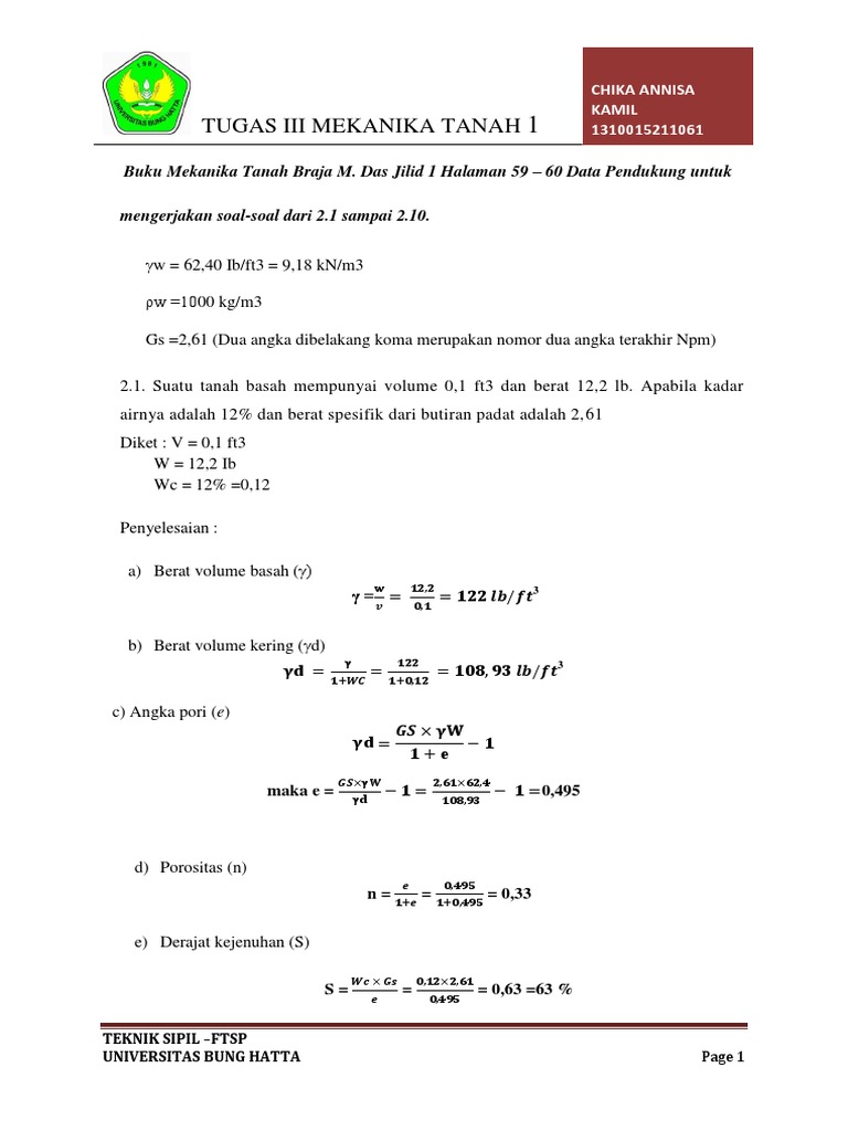 Contoh Soal Dan Jawaban Mekanika Tanah 1 Contoh Soal Terbaru