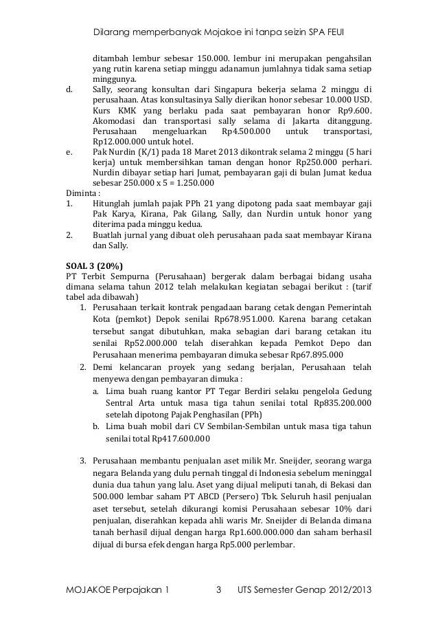 Mojakoe Perpajakan 1 Uts Genap 2012 2013 Selain Witholding