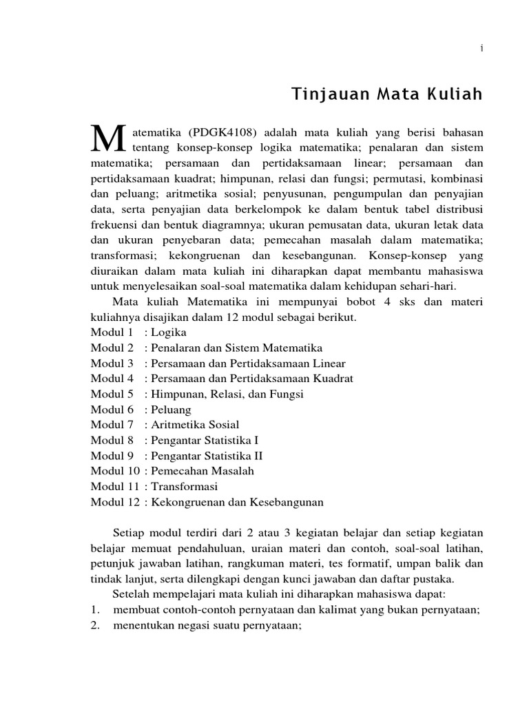 Sukirman tarhadi djamus widagdo elang krisnadi yumiati tati rajati edisi 2 4 sks modul 1 12 606 halaman. Soal uas ut matematika pdgk4108.
