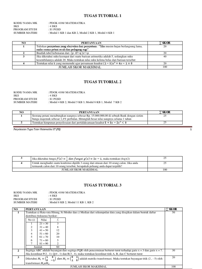 Penalaran dan Sistem Matematika Modul 3. Materi soal ini dapat anda baca di modul. View TUTORIAL 4 - PDGK 4108pptx from PGSD 005 at Terbuka University.