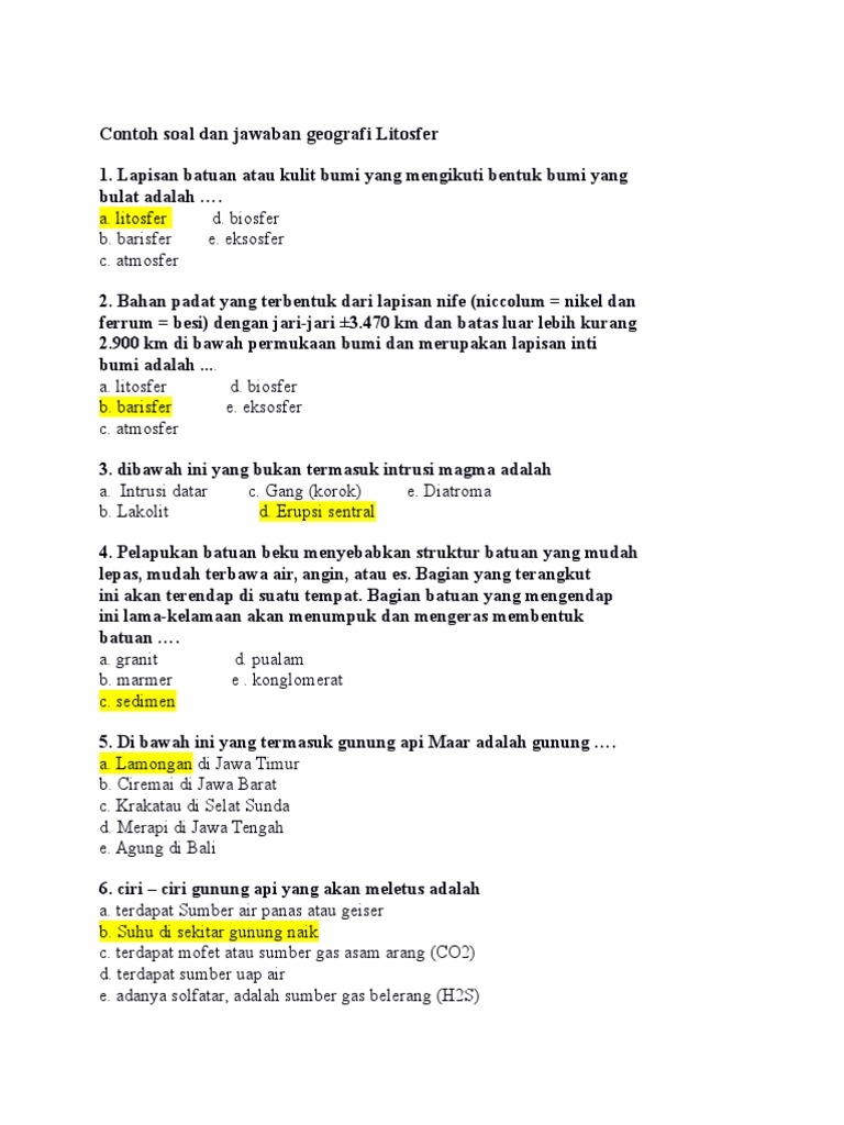 Contoh Soal Dan Jawaban Geografi Litosfer