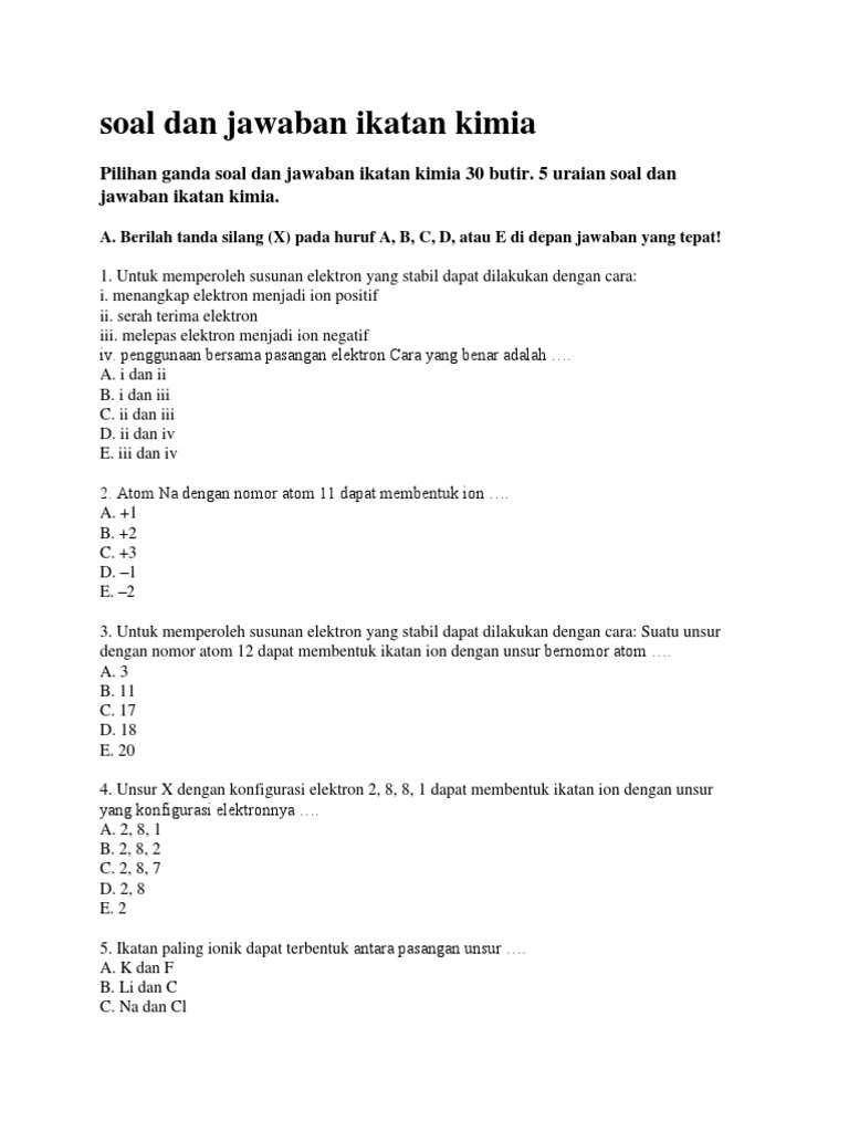 Pilihan Ganda Soal Dan Jawaban Ikatan Kimia 30 Butir