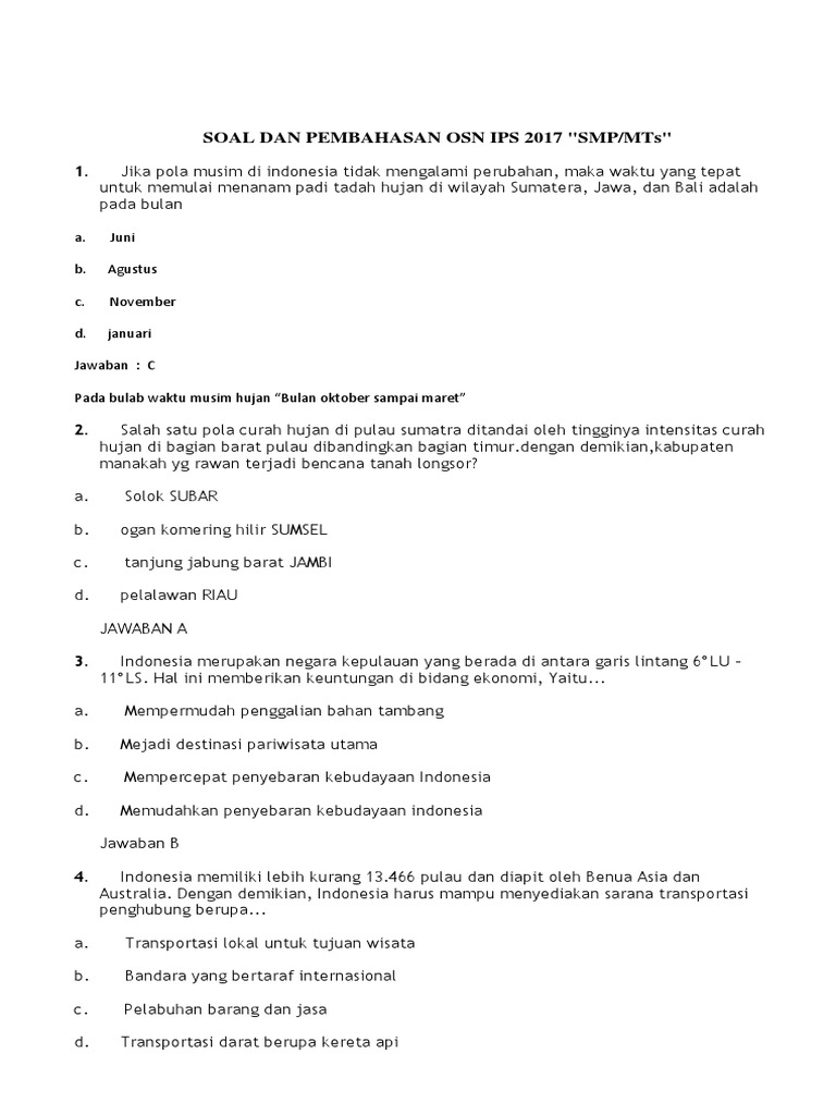 Soal Dan Pembahasan Osn Ips Smp Tingkat Kabupaten 2017