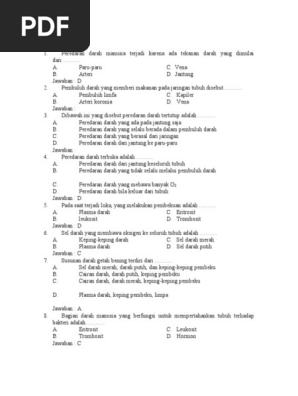 Apr 25 2016 Kumpulan Soal dan Jawaban Sistem Peredaran Darah Posted by Edutafsi on 25 April 2016 - 153 PM Kumpulan soal pilihan berganda tentang sistem peredaran darah ini meliputi beberapa subtopik dalam bab sistem peredaran darah yaitu komponen darah fungsi darah penggolongan darah proses pembekuan darah alat-alat perdaran darah dan kelainan atau. Sistem peredaran darah adalah sangat vital sekali untuk kehidupan manusia berikut ini akan disajikan 10 soal pilihan ganda sistem peredaran darah jawaban serta pembahasan. Kami mengumpulkan soal dan jawaban dari TTS Teka Teki Silang populer yang biasa muncul di koran Kompas Jawa Pos koran Tempo dll.