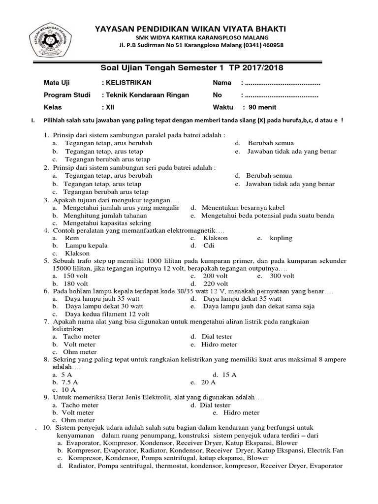 Soal Dan Jawaban Teknik Kendaraan Ringan Bali Teacher