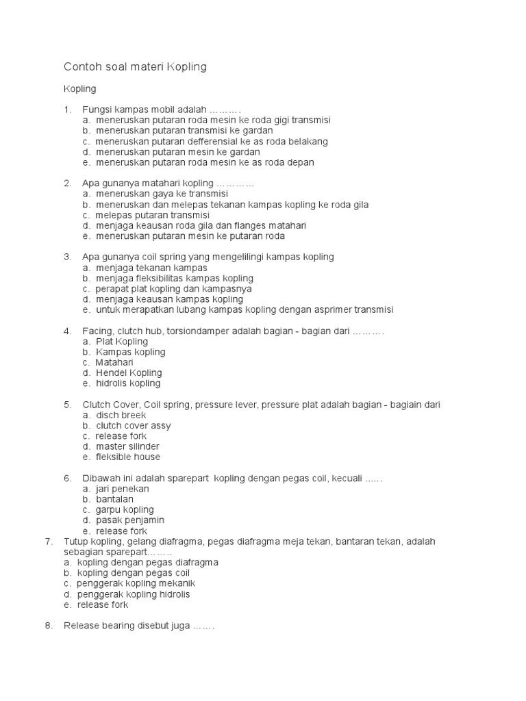 Contoh Soal Materi Kopling Docx