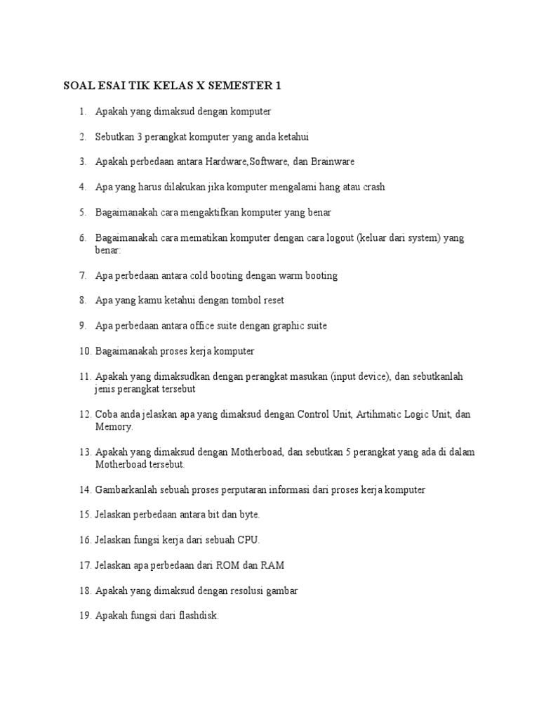 Soal Esai Tik Kelas X Semester 1