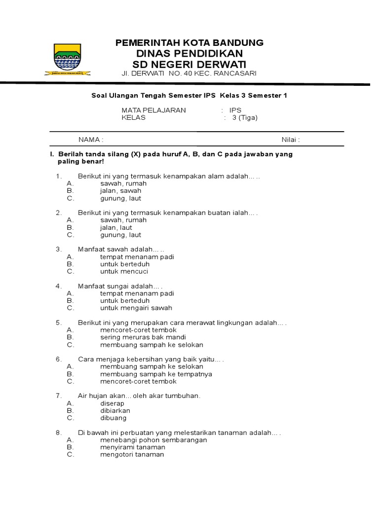 Soal Uts Ips Kelas 3 Semester 1 Doc