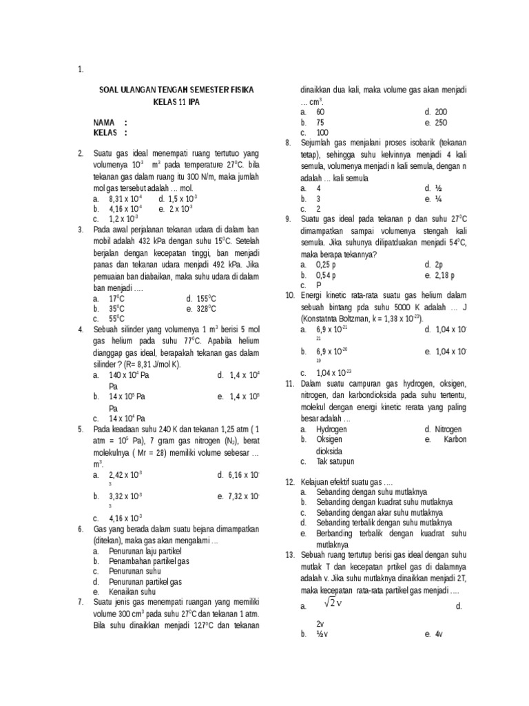 Contoh Soal Uts Fisika Kelas 12 Sma Ma Fisika Kurikulum Kimia