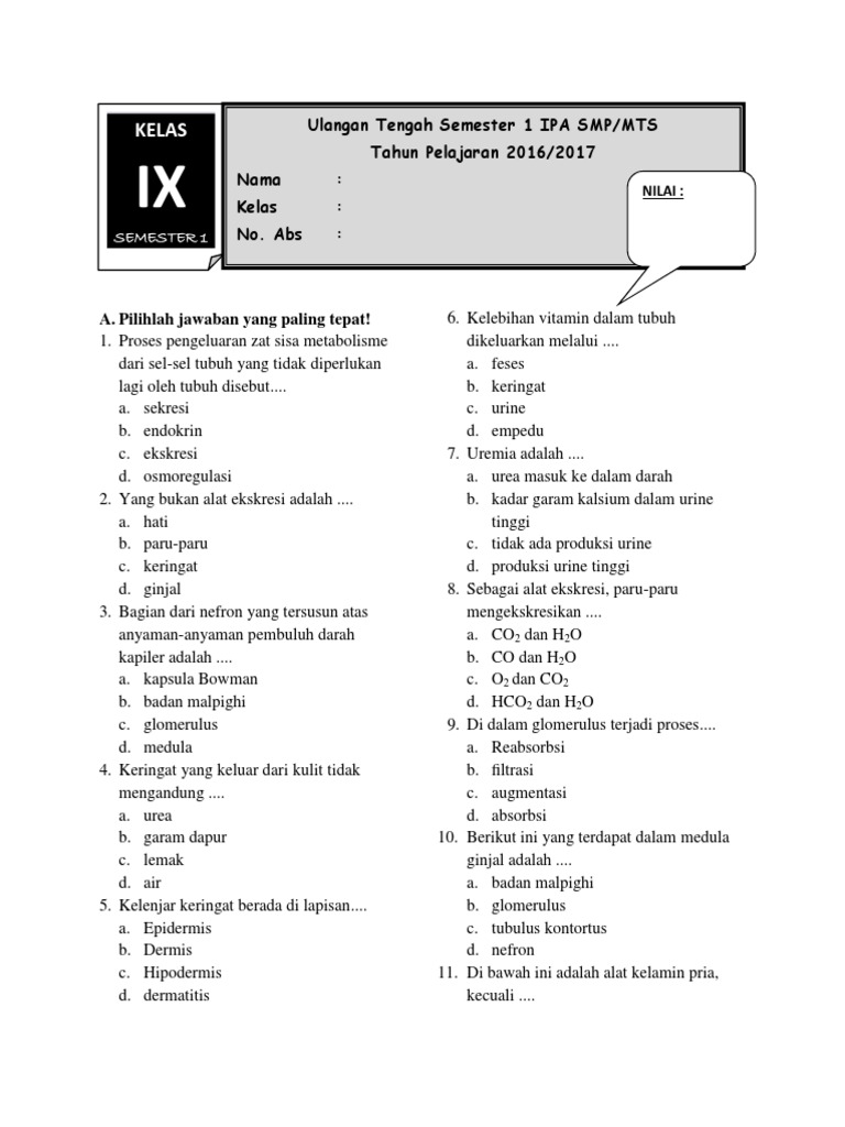 Soal Uts Ipa Kelas Ix Semester 1 34m7xpo2oo46
