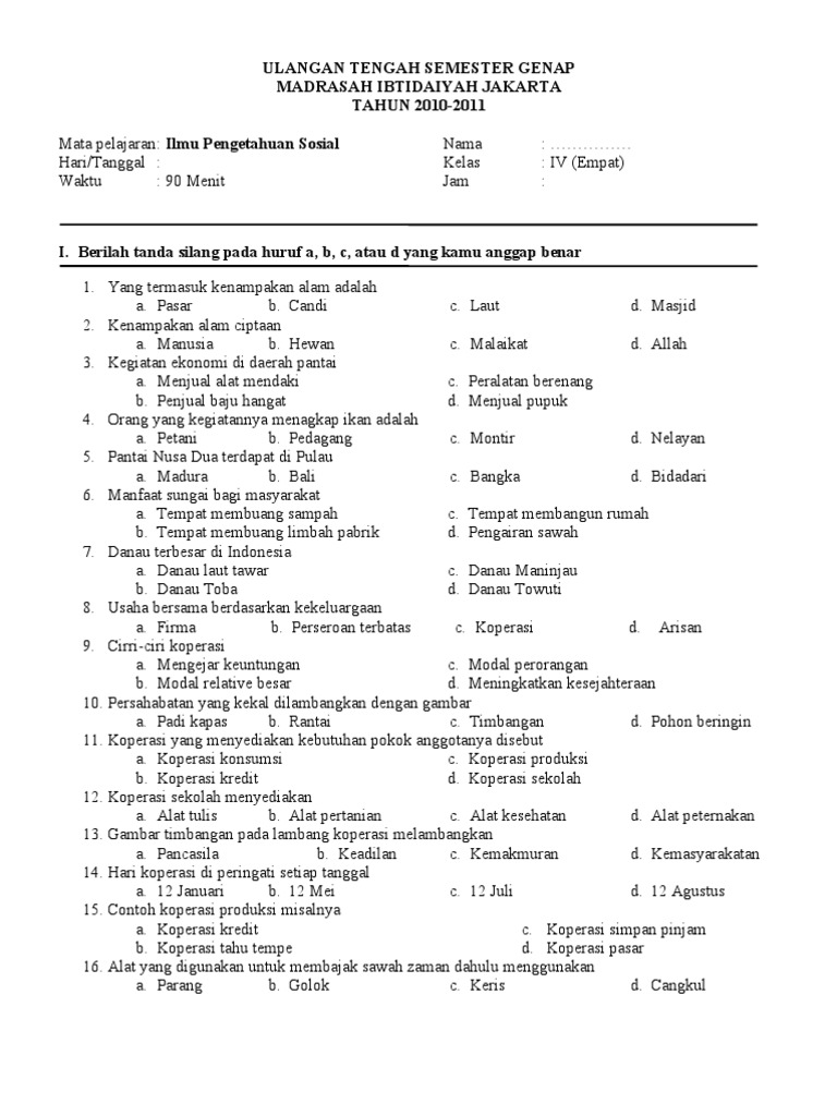 Soal Dan Kunci Uts Ips Kelas Iv