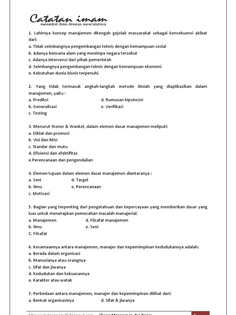 Latihan Soal Dasar Manajemen Bisnis