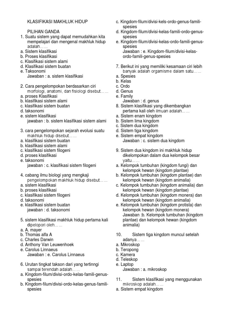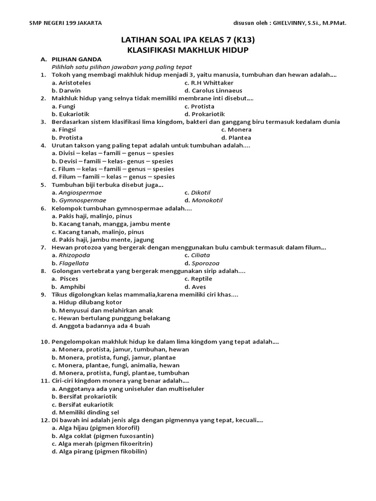 Contoh Soal Klasifikasi Makhluk Hidup Kelas 7 Pdf Dapatkan Contoh