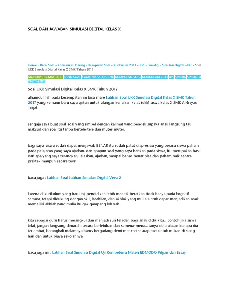 Soal Dan Jawaban Simulasi Digital Kelas X Pdf